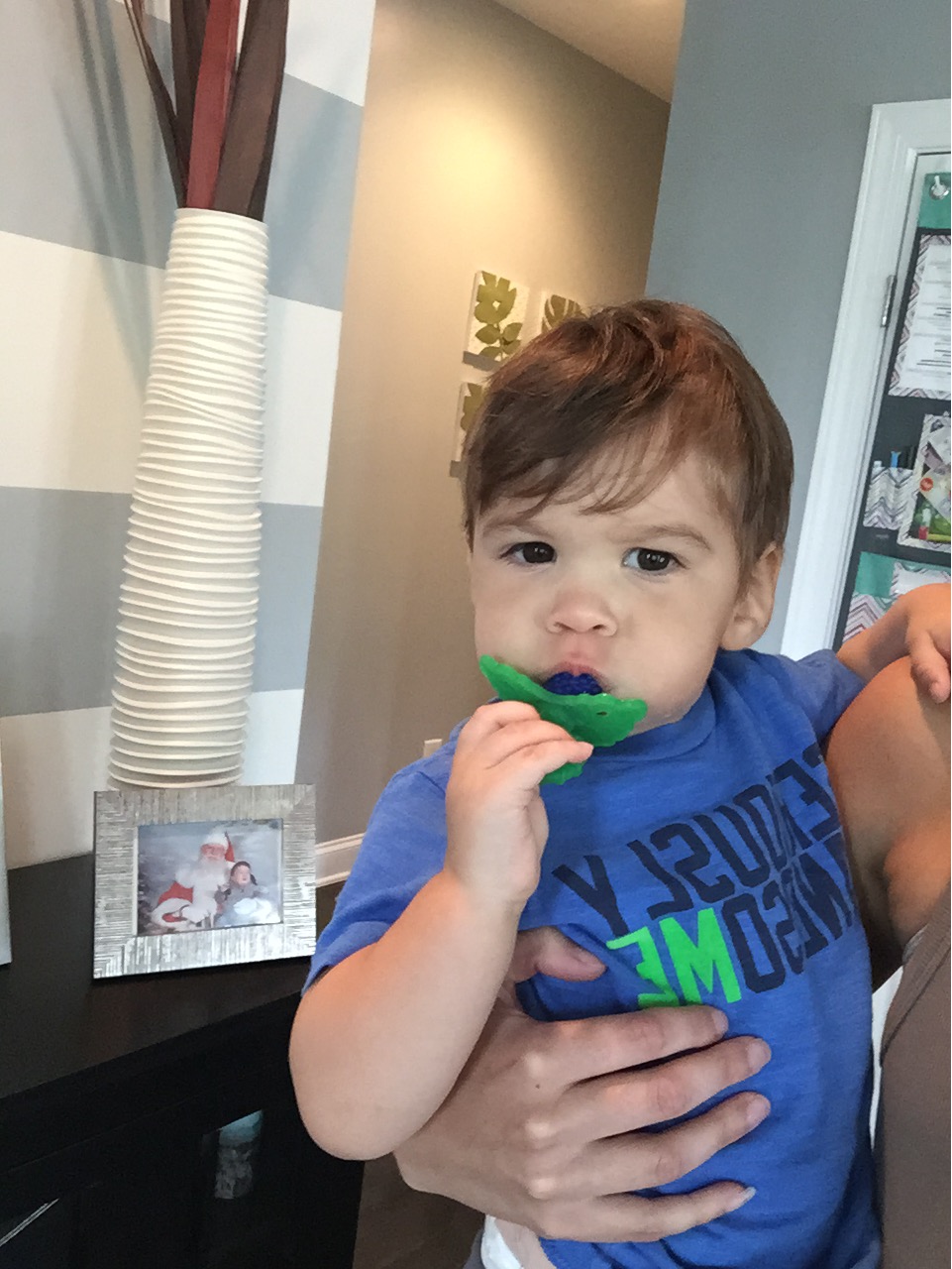 These were not a hit for my oldest son when he was teething but my youngest LOVES these. You can’t tell from the picture but he does, just a little grumpy that’s all haha.  With these, I just clean them, throw them in the freezer and after a little while they are ready to go.