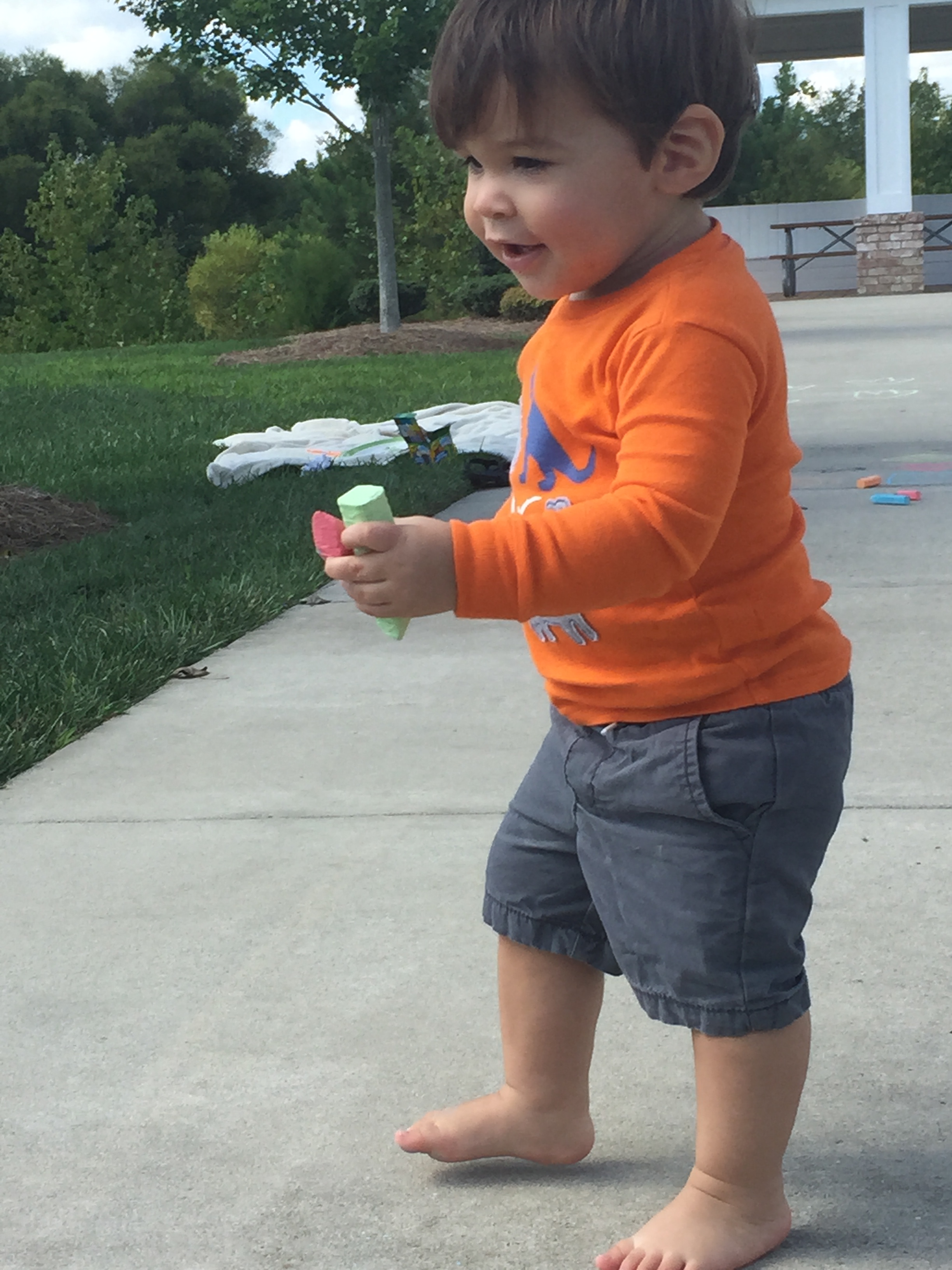 This afternoon I decided to grab a blanket, some chalk (random I know but stay with me), load the boys up to go to chick fil A for lunch and take them to the gazebo for a nice afternoon picnic. We ate lunch on a blanket and covered the sidewalk in the most artistic drawings any 3yr old has ever produced!