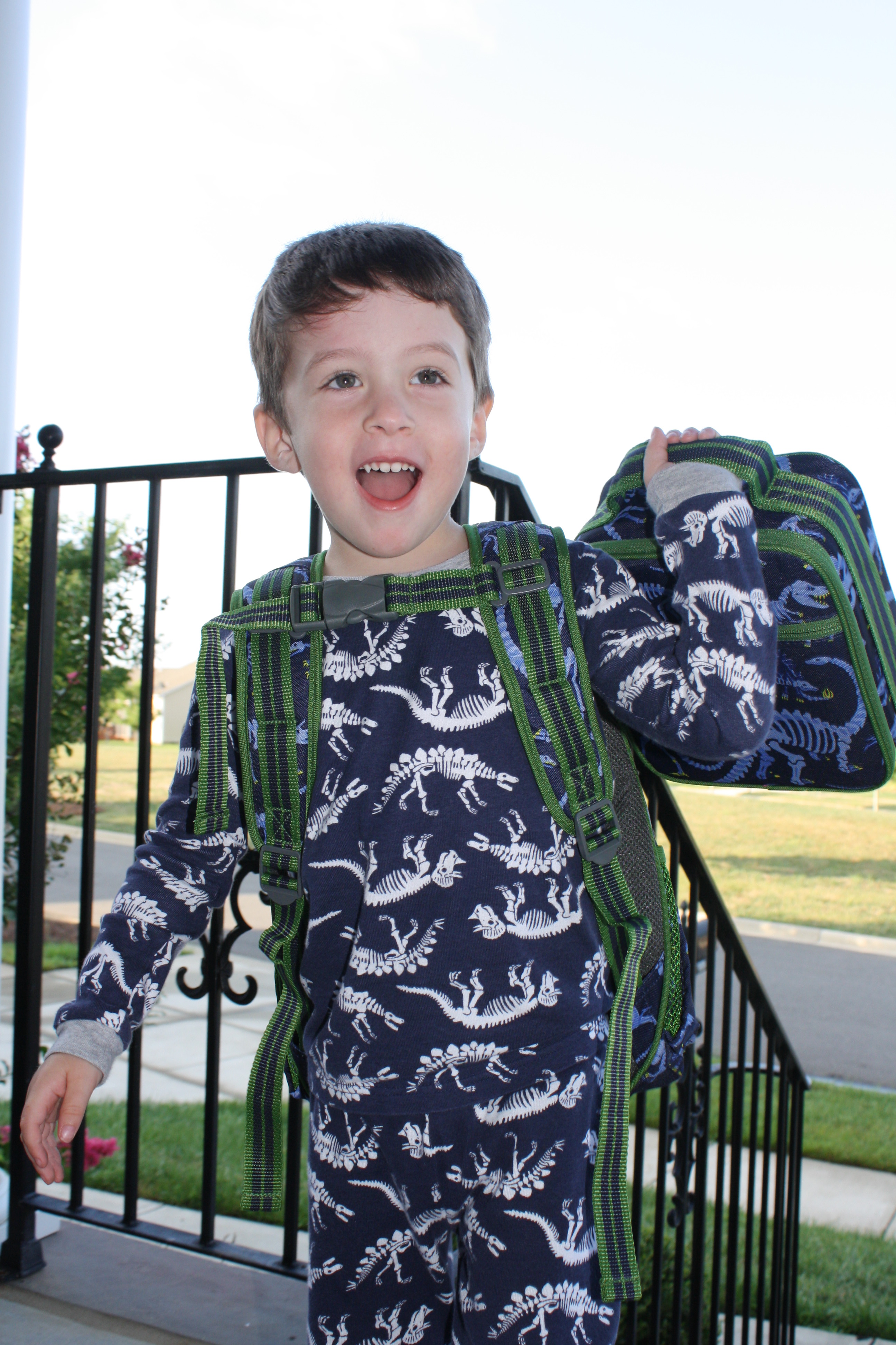 Anyways…he is so excited about going to school with all of his cool dinosaur backpack and lunchbox, dino gear, light up Stride Rite Captain America Light-Up Sneaker (Toddler)(they are actually really cool haha) most of all, to play with “all of my friends”. As much as it pains me to say this, I don’t think he will have a hard time at all. This is the kid that walks up to anyone at the store, tells them about his day and then stamps their hand with a dino stamp as a farewell! So unless he changes in the next few weeks, he will be perfectly fine.